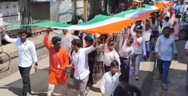 বেঙ্গল ওয়াচ নিউজ ডেস্ক: পূর্ব বর্ধমান :স্বাধীনতা দিবস’ আমাদের কাছে একটা আবেগ। সেই আবেগেই গা ভাসিয়ে দিয়েছেন সমস্ত ভারতবাসী। পূর্ব বর্ধমান তার থেকে ব্যতিক্রম নয়। স্বাধীনতা দিবস উদযাপনের লক্ষ্যে পূর্ব বর্ধমানের কাটোয়া শহরের ‘আরম্ভ’ নামক একটি সংস্থার উদ্যোগে আয়োজিত হল তিরঙ্গা যাত্রা। তিরঙ্গা মাথায় নিয়ে বর্ণাঢ্য পদ যাত্রার এই ছবি ধরা পড়ল কাটোয়া শহরে। কাটোয়া শহরের মধ্যে আরম্ভ নামক এই গ্রুপের পরিচালনায় আয়োজিত হয় তিরঙ্গা যাত্রা। যেখানে তিরঙ্গার দৈর্ঘ্য ছিল ৩০০ ফুট। বিশালাকার তিরঙ্গা মাথায় নিয়ে বর্ণাঢ্য পদযাত্রায় পা মেলায় কাটোয়া শহরের যুবক-যুবতি থেকে শুরু করে অগণিত মানুষ। ৭৯’তম স্বাধীনতা দিবস উপলক্ষে আরম্ভের এই কর্মকাণ্ডের সূচনা করেন কাটোয়া পৌরসভার চেয়ারম্যান সমীর কুমার সাহা এবং কাটোয়া থানার আইসি তীর্থেন্দু গাঙ্গুলি।