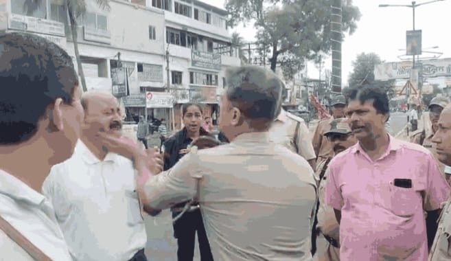 এক আন্দোলনকারীকে বংশীহারী থানার আইসি বলেন, “পিকেটিং করতে পারবেন। কিন্তু, গাড়ি আটকানো যাবে না।” এরপরই সিপিআইএমের বংশীহারী এরিয়া কমিটির সদস্য মাজেদার রহমানের সঙ্গে বচসা বাধে আইসি-র। মাজেদারকে অসীম গোপে বলেন, “অনেকক্ষণ আন্দোলন করছেন। এবার ছাড়তে হবে।” তার জবাবে মাজেদার বলেন, “সারাদিন আন্দোলন করব।” তখন আইসি বলেন, “গরম দেখাচ্ছেন।” জবাবে মাজেদার বলেন, “না গরম দেখাইনি।” সঙ্গে সঙ্গে বাঁ হাতে সপাটে মাজেদারকে চড় মারেন আইসি। ঘটনায় হতচকিয়ে যান ওই সিপিএম নেতা। চড় মারার পর আইসি বলেন, “ফাজলামো হচ্ছে।” এরপরই পুলিশ ওই বাম নেতাকে গ্রেফতার করে। এখানেই না থেমে আইসি বলেন, “গরম চলবে না। দাদাগিরি চলবে না।” আন্দোলনকারীরা বলেন, “আমরা কেউ দাদাগিরি করিনি।” এরপর পুলিশের বিরুদ্ধে স্লোগান দিতে থাকেন আন্দোলনকারীরা। তাঁরা স্লোগান দেন, “পুলিশ তুমি উর্দি ছাড়ো। তৃণমূলের ঝান্ডা ধরো। ধর্মঘটে পুলিশের অত্যাচার মানছি না, মানব না।”